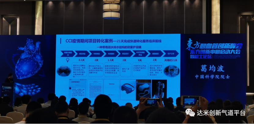 葛院士提到,在今年的新冠疫情期間,以他為首的CCI(中國(guó)心血管醫(yī)生創(chuàng)新俱樂(lè)部)、CMIA(中國(guó)醫(yī)學(xué)創(chuàng)新聯(lián)盟)團(tuán)隊(duì)發(fā)起了為新冠疫情期間存在醫(yī)學(xué)痛點(diǎn)問(wèn)題進(jìn)行創(chuàng)新轉(zhuǎn)化的行動(dòng)。其中與達(dá)米醫(yī)療聯(lián)合轉(zhuǎn)化共同抗疫的“一種帶有疏水排水結(jié)構(gòu)的防霧護(hù)目鏡”,在21天的時(shí)間內(nèi)完成了創(chuàng)新方案提出-項(xiàng)目評(píng)估-專利申請(qǐng)-專利授權(quán)-樣品設(shè)計(jì)-3D打印樣品-捐助疫區(qū)-生產(chǎn)上市的轉(zhuǎn)化,以最快的速度為疫區(qū)醫(yī)護(hù)提供安全防護(hù)保障。