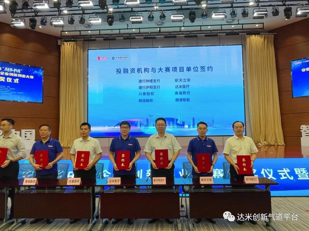 9月26日,大賽頒獎儀式在中國建設銀行安徽省分行舉行。達米醫(yī)療研發(fā)總監(jiān),中國科技大學附屬第一醫(yī)院夏敏醫(yī)生代表企業(yè)領(lǐng)獎,并與投融資機構(gòu)進行了投資意向的簽約儀式。